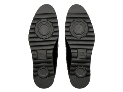 取り外し可能な成型中敷は、硬さの異なるフォーム材を組み合わせた設計によりクッション性を保ちつつ、アーチの沈み込みやかかとのぐらつきを軽減するサポート性を付加している。さらに、ソールのかかと部分にはαGEL Foamを搭載し、衝撃緩衝性を高めています。アウターソールには、耐久性とクッション性を併せもつラバースポンジを採用。過去のアーカイブのトレーニングシューズに使われていたソールのデザインをベースに、厚みのあるシャークソールで、踏み付け部とかかと部に円形の意匠を配置しています。