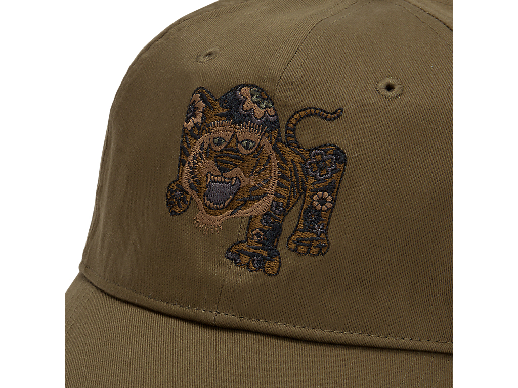 人気の虎モチーフがフロントに刺繍された6パネルキャップ。