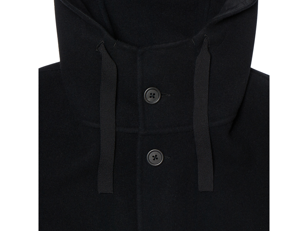 シンプルでエレガントなデザインは、無地のシックな表情で高級感を漂わせます。サイズ調整が可能なフード、ウエスト、裾には総針テープを採用し、細部までこだわり抜いた作りを実感いただけます。また、水牛ボタンや袖口の本切羽が、さらなる上質感を引き立てます。