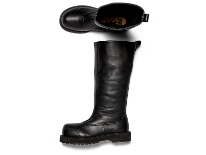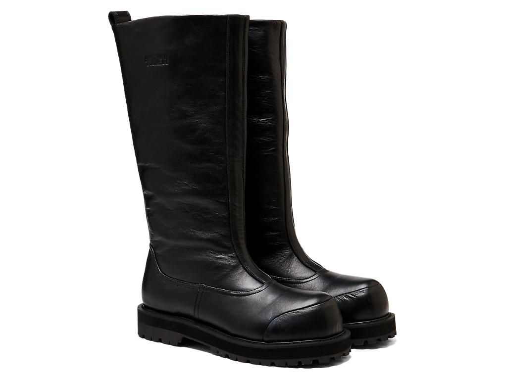 アーカイブシューズのひとつである、南極観測隊に使用された特殊作業用防寒靴をデザインベースにエレガントに仕上げたロングブーツ。