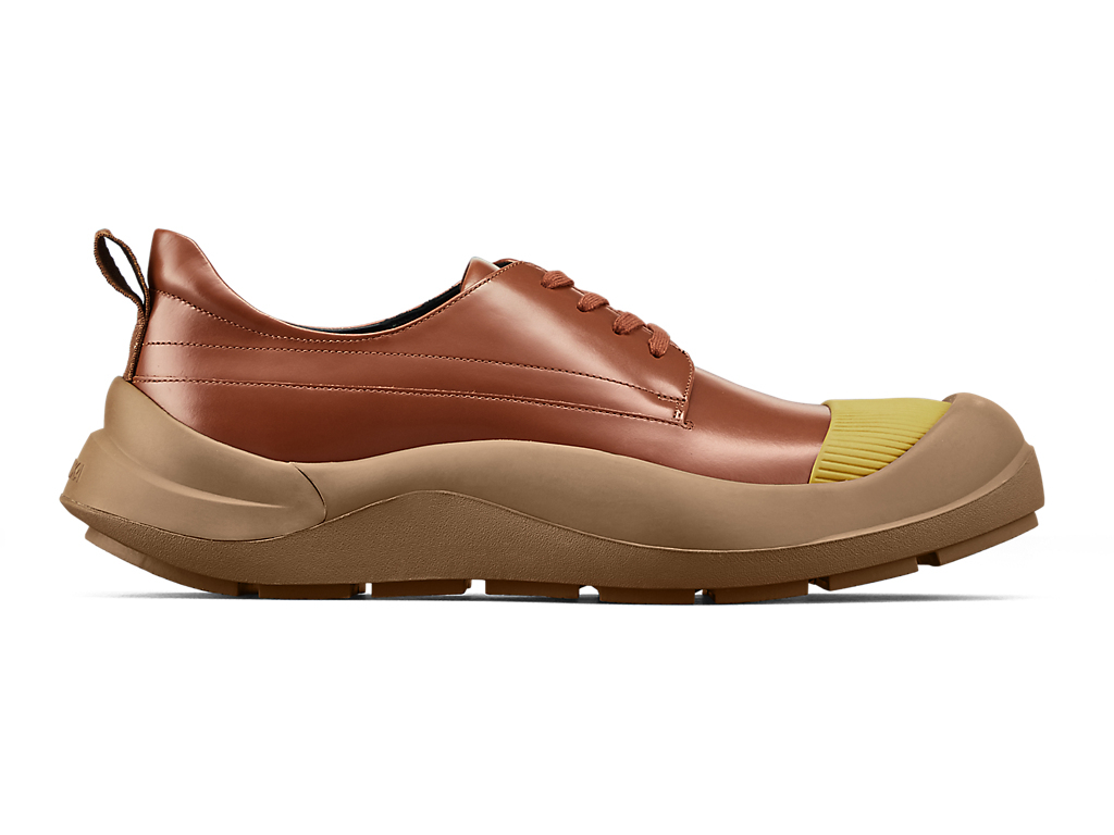 流線を使ったデザインのソールが特徴のアイテム。アッパーのデザインはトレンドに左右されないダービースタイルのレースアップで、素材はドレスシューズにも使用されているほどよい光沢感のあるステアガラスレザーを使用。